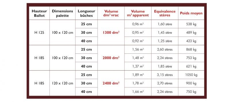 Le volume apparent est d’environ 2.60 stères mais équivaut à 3,4 stères en termes de pouvoir calorifique.